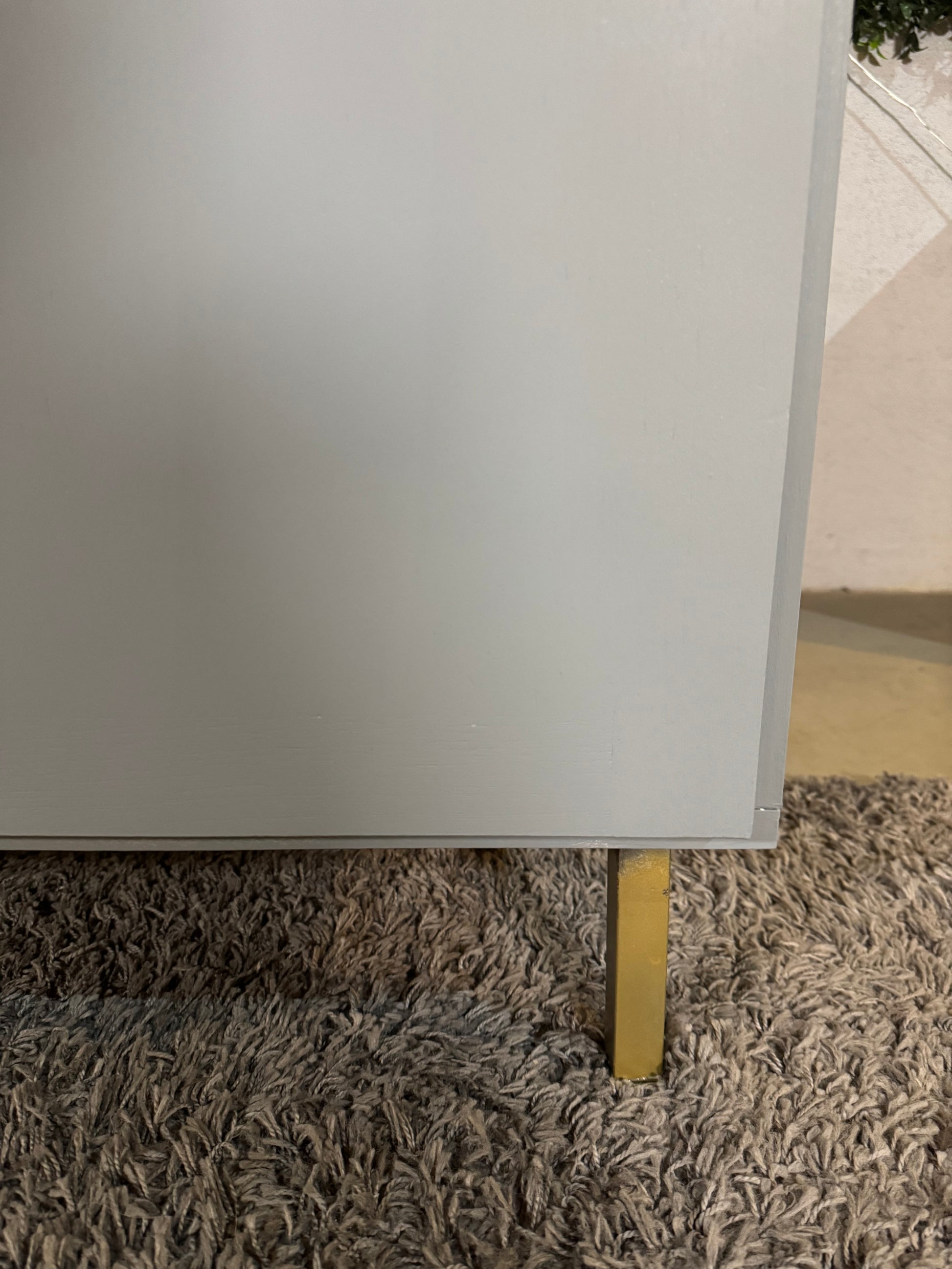 Beine und Schlüssel wurden neu in Gold lackiert und verleihen dem Schrank einen eleganten Look.
