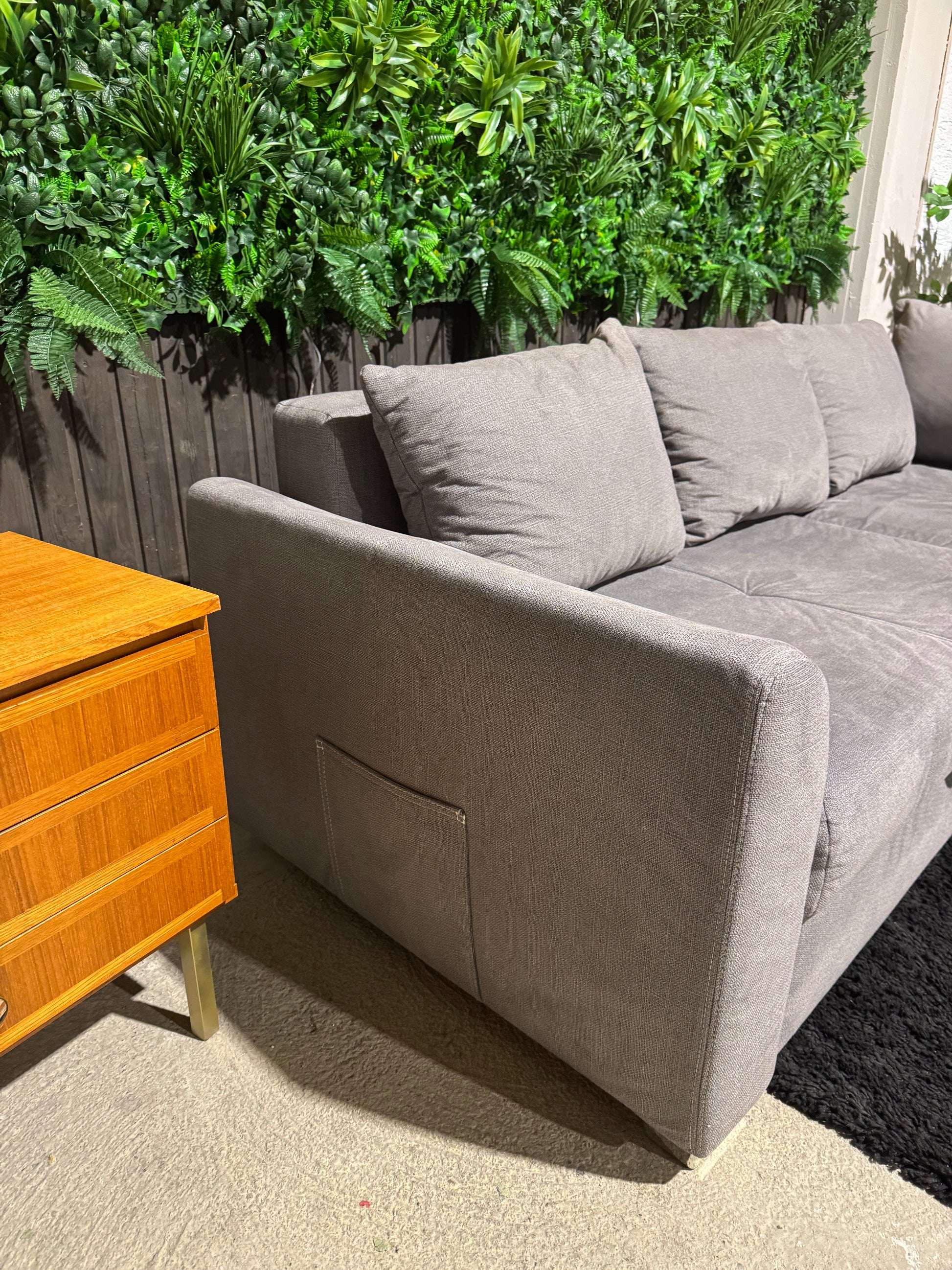 Verkauft wird mein modernes graues Schlafsofa, das stilvolles Design mit praktischer Funktionalität vereint. Mit wenigen Handgriffen lässt es sich in eine komfortable Liegefläche verwandeln und bietet dank der zwei integrierten Bettkästen viel Stauraum für Decken und Kissen. Ideal für Wohnzimmer, Gästezimmer oder kleine Räume – platzsparend und vielseitig nutzbar.